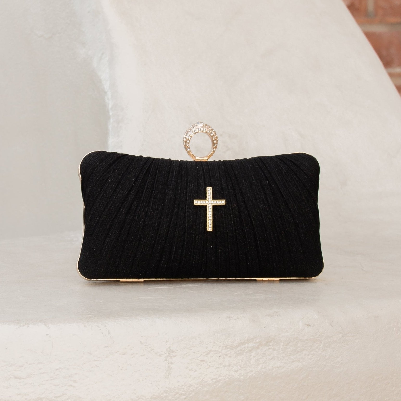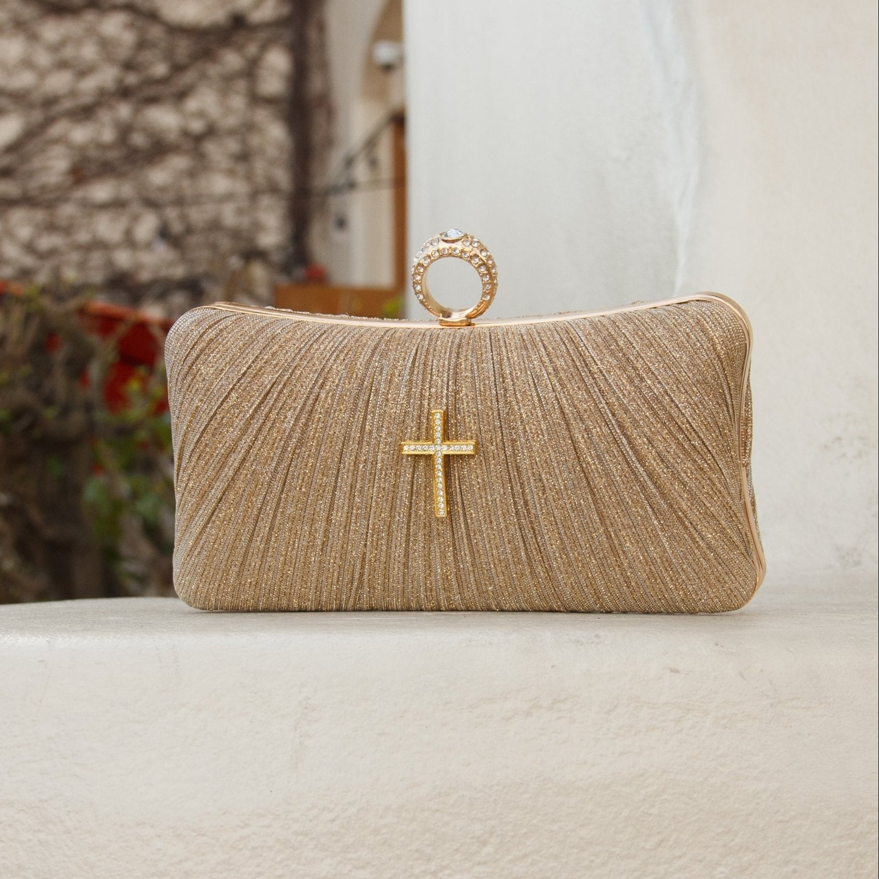 This lovely crossbody bag has a long gold chain and shines with shimmering elegance—designed to carry both beauty and meaning.